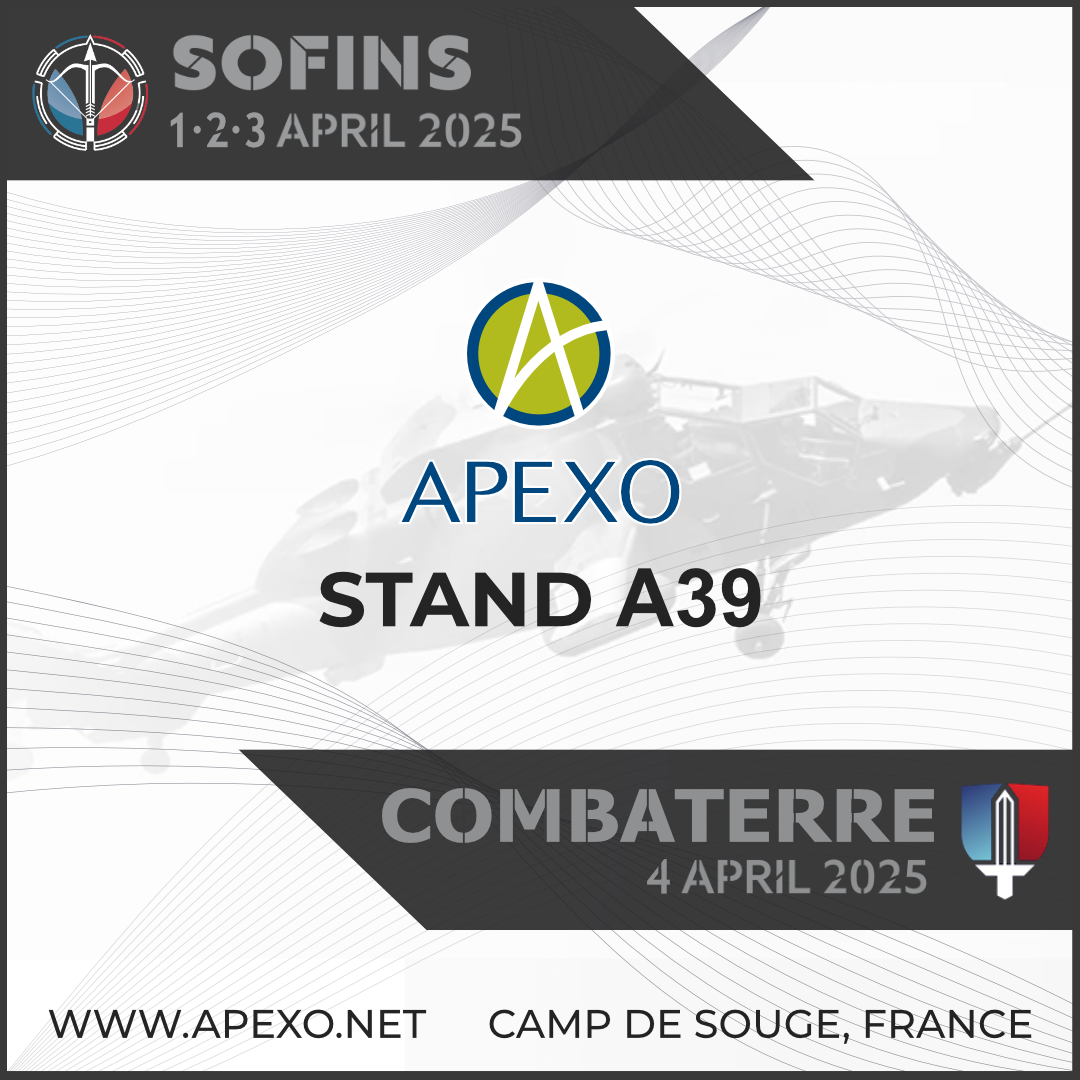 Catch up with the ApexO team at SOFINS this 1-2-3 of April at the Camp de Souge, France. We will see you at stand A39 in the Paris Region. We will also be at the Combaterre on April 4th.