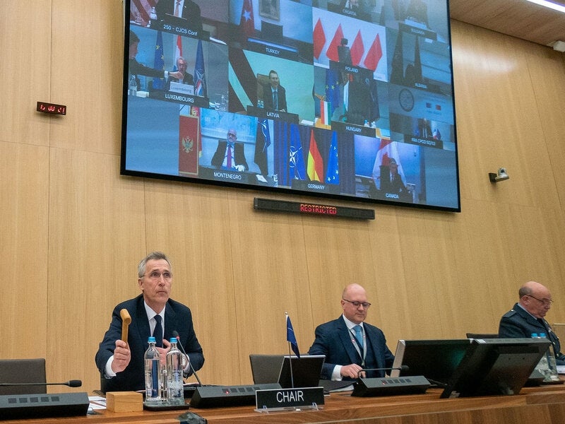 Nato secretary-general Jens Stoltenberg said: “We addressed a number of issues, including our missions in Afghanistan and Iraq and our support for Georgia and Ukraine, but our response to the Covid -19 was at the top of our agenda.