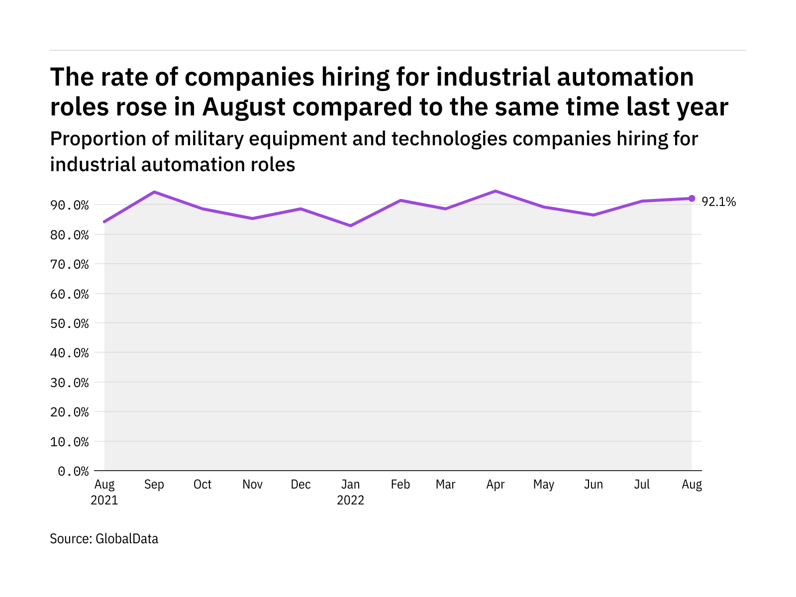 The proportion of military equipment and technologies companies hiring for industrial automation related positions rose in August 2022 compared with…