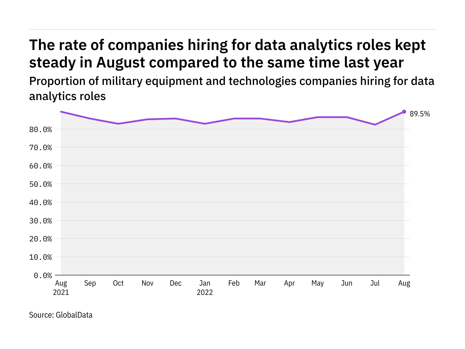 The proportion of military equipment and technologies companies hiring for data analytics related positions kept relatively steady in August 2022…