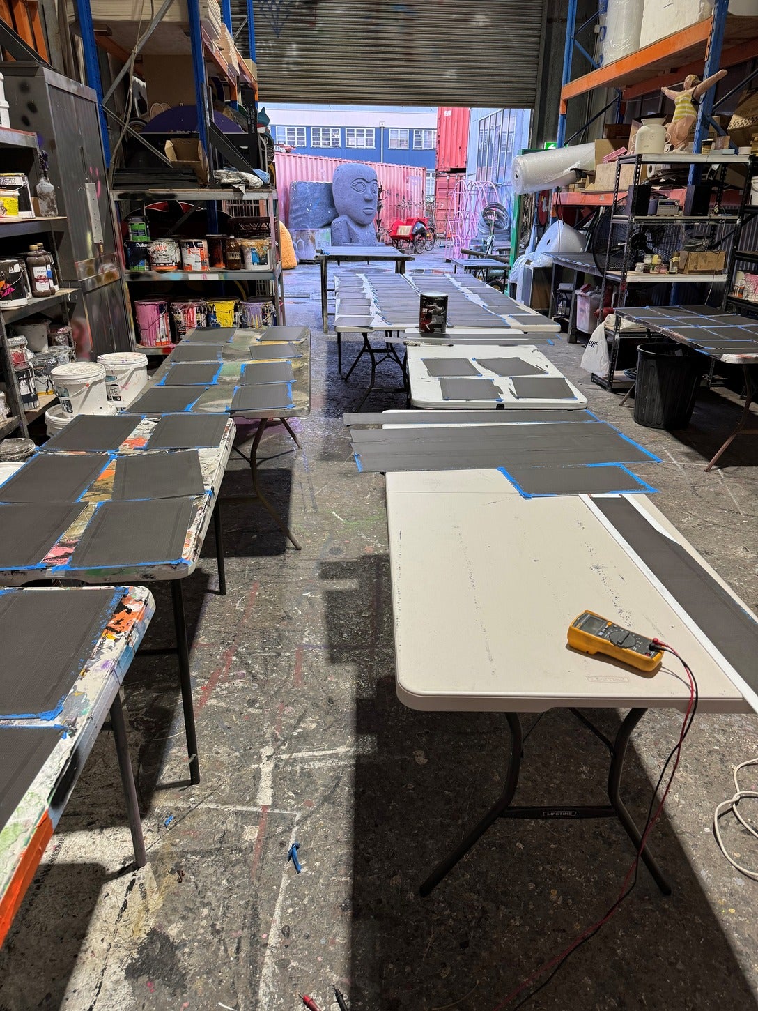 We have coated our targets with our (USA/World patented ) low-voltage acrylic paint, and when plugged into the battery or low-voltage power, the target heats up. The core of our patent is a TCR of 0, meaning our carbon /graphite formulation in various resins has a close to zero change in resistance when electrical current is applied. This unique property ensures the product doesn’t ‘run away’ to combustion under an electrical charge.