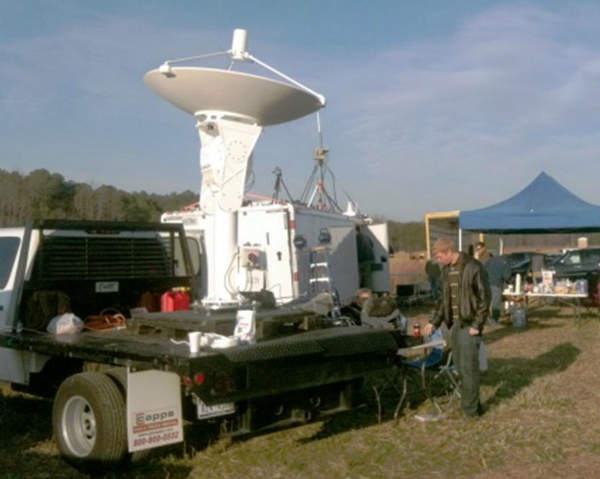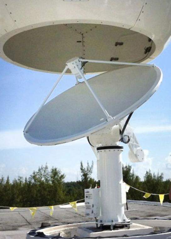 Electronics mounted on the elevation arm provide options for alternating current (A/C), or direct current (DC) power, 100bT or 1,000bT Ethernet, fiber, data pairs, and RF channels through to the antenna positioner base.