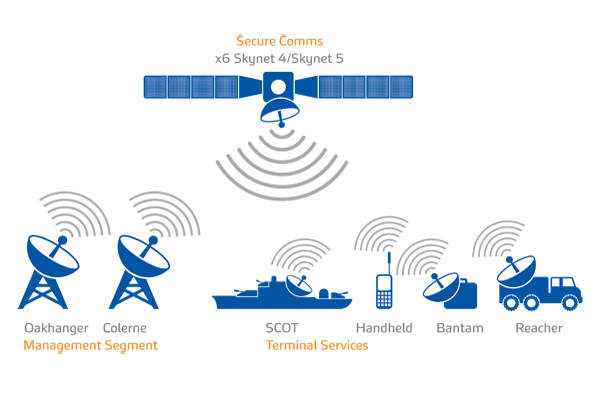 Our primary contract is to provide the UK Ministry of Defence’s secure Skynet 5 satellite communications service to the UK armed forces. The terms of the contract, and the additional in-built capacity of Skynet 5, mean we can also provide secure communication services to non-UK armed forces, governments, organisations and businesses. This provision of service and capacity leasing is actively supported by the UK MOD, through
