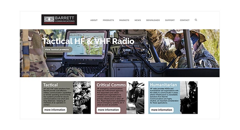 In addition, helping to make Barrett Communications range of HF and VHF communications equipment easy to browse, is the new Markets section. This section allows site visitors to select the market in which they operate and understand how Barrett’s capability and product range can provide reliable, secure and field proven radio communications solutions to their industry.