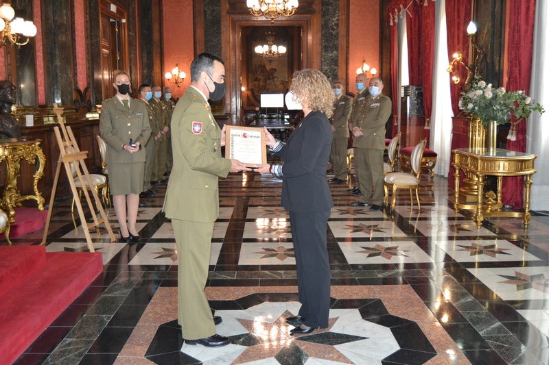 On Thursday, April 15, 2021, in the Throne Room of the Palace of the Old Captaincy General of Aragon, the Military Commander of Zaragoza and Teruel, General Manuel Pérez López, presided over the act of delivery of the identity card of ‘Ambassador of the Army brand’ to Clara Arpa Azofra, appointed for said position by the Army General, Chief of the Army Staff.