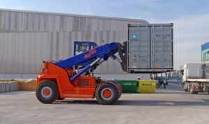 Meclift’s unique ML1612R and ML1812R forklift trucks possess lifting capacities of 16t and 18t respectively and are currently the only solutions on the market within this lifting range that are able to operate inside containers.