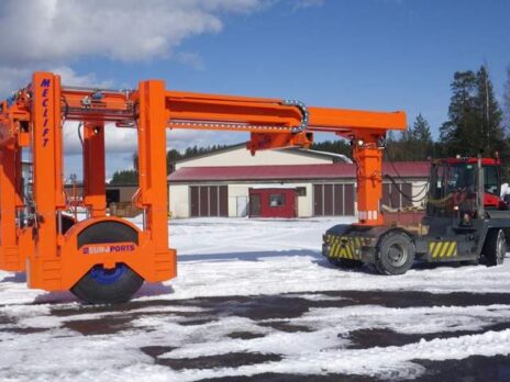 Meclift’s container mover is able to increase personnel safety during transport activities by granting open forward-visibility from the terminal tractor’s cabin, and the unit is fitted with separate twist-locks at the front and rear that can be separately adjusted sideways to ensure the container is securely gripped.
