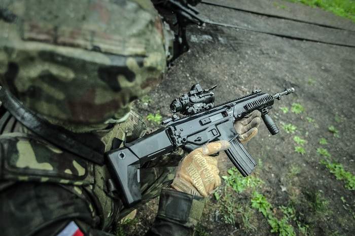 The modular design also allows for adding further configurations in the future. A quick mission-tailored weapon down at the individual end-user level. Highly ergonomic and fully ambidextrous. The Grot assault rifle is fed by a 5.56mm x 45mm NATO intermediate cartridge, but a MSBS-7.62 battle rifle for 7.62mm x 51mm NATO rifle cartridge is also under development.