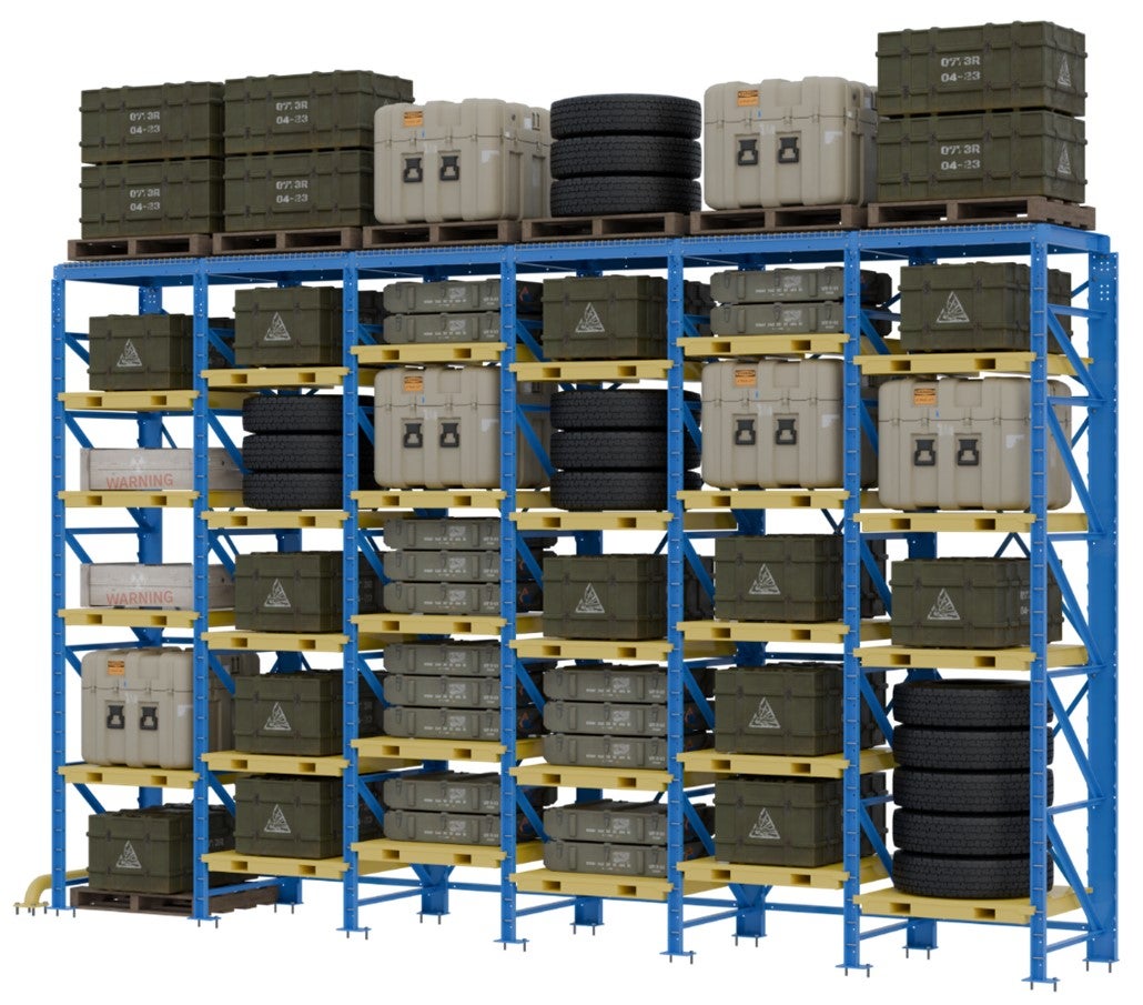 Rapistak Corporation designs and manufactures space-saving storage management systems tailored for industrial, military and government applications. Our comprehensive range of solutions includes the Unit Supply Cargo rack for indoor and outdoor air cargo container storage, Prostak stacker crane and pallet handling system, and Maxrak, for instantly adjustable storage, all of which are specifically engineered to optimise floor space and enhance operations.