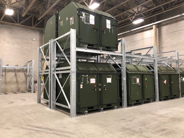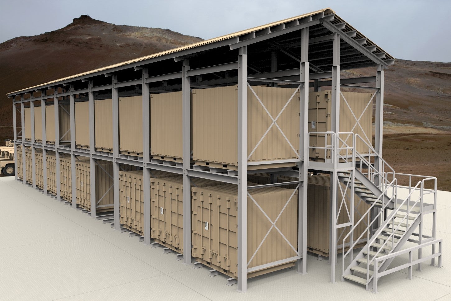 The Unit Supply Cargo Rack (USCR) is a rugged, deployable storage solution engineered for military logistics and rapid field operations. With shelf capacities up to 26,000 lbs and heights ranging from 10 to 20 feet, USCR accommodates a wide variety of cargo containers, including ISU-90s, Bicons, Tricons, Quadcons, and CONEX boxes. It is fully compatible with 463L and HCU-6/E pallets.