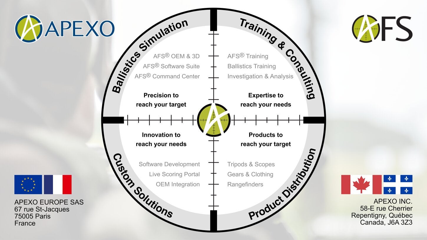 ApexO is a Canadian company founded by Benoit Dufresne in 2005. His vast experience and NATO-recognised expertise in ballistics, statistics, ammunition development and industrialisation have been used to create the ApexO firing system (AFS®), an integrated solution developed to answer snipers’ needs that were not answered by any ballistic calculators on the market.