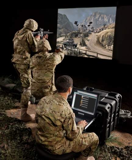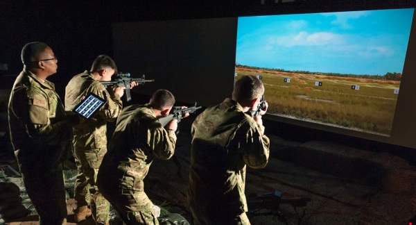 Using a combined weapon and virtual simulation strategy, soldiers can train on small arms up to crew-served weaponry.