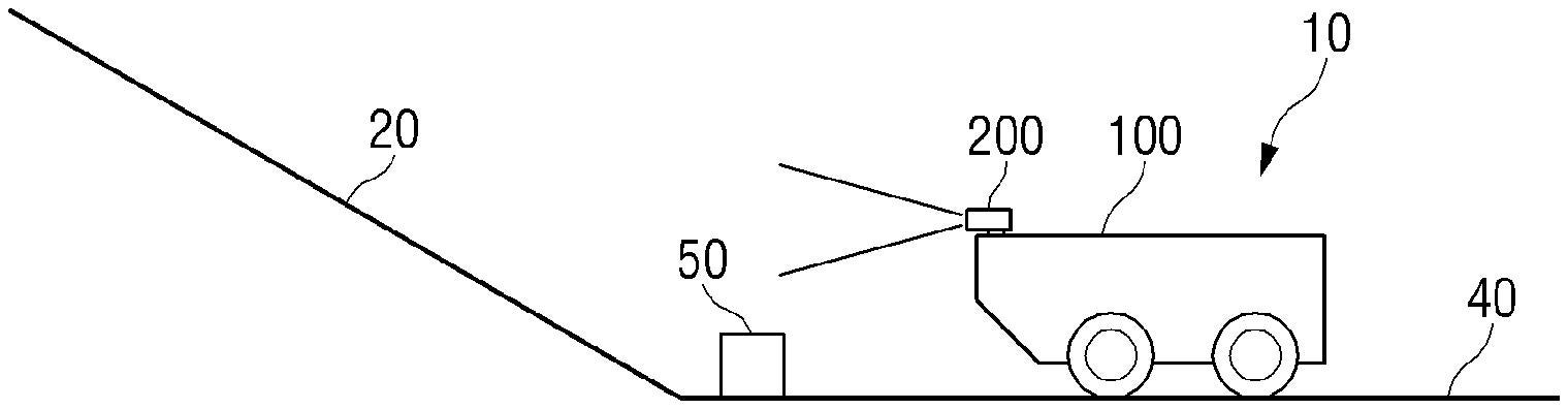 Furthermore, the patent also details a driving controlling method for the driving apparatus, involving the detection of surroundings using LIDAR and a camera, and controlling the vehicle based on the detected surroundings. The method includes identifying ramps and flat ground on the driving path by analyzing camera images and LIDAR data, ensuring that these features are not mistaken for obstacles that could trigger an emergency stop. By monitoring the movement of feature patterns in the images, the method can accurately determine the type of terrain the vehicle is navigating, adjusting the weights assigned to LIDAR and camera data for precise detection and control.