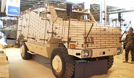Accordingly, the floors of the exhibition centre and the outdoor arena were liberally furnished with the latest armoured vehicles developed by all the major manufacturers. Each had been honed to best counter asymmetric warfare in recent Middle-Eastern theatres by all the major manufacturers, and some were the result of Urgent Operational Requirements (UORs) when the commissioning armies discovered its existing vehicles were not up to the terrain or attacks.