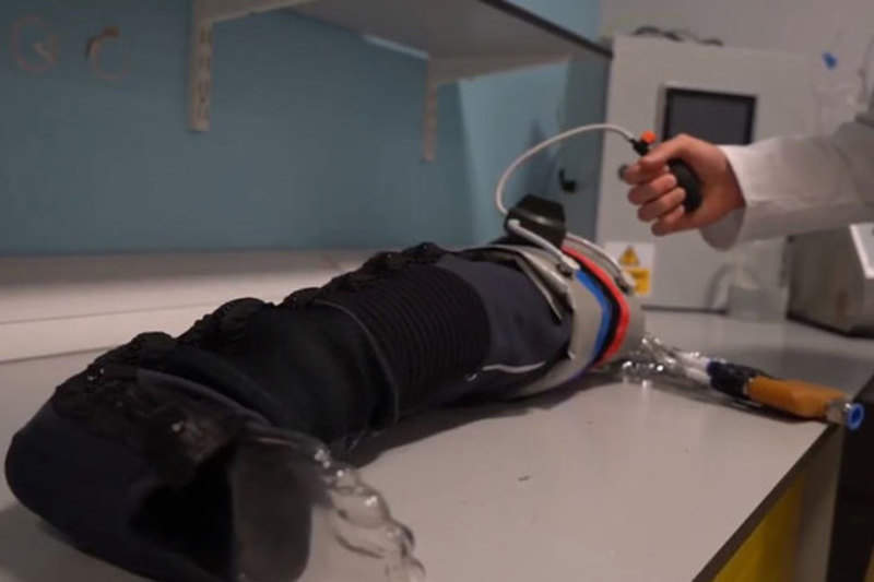 Following this, a cooling ‘sock’ is wrapped around the injured tissue to protect it from further damage until the patient is evacuated to a hospital. The limb is placed inside a protective ‘box’ at the hospital, which can sustain the area while doctors try to repair the tissue.