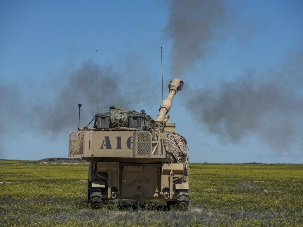 The regiment’s M109A6 Paladin is a cannon artillery system that fires 155 mm artillery shells.