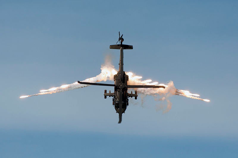Image: A Colombian Air Force’s AH-60L Arpia aircraft firing its flares. Photo: courtesy of Andrés Ramírez.