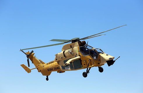 Image: Spanish-built Tiger HAD helicopter during its maiden flight test. Photo: copyright of Eurocopter.