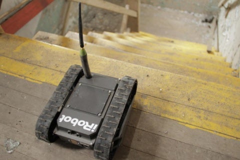 FirstLook robot, introduced in 2011, is engineered to survive drops from up to 15ft onto concrete and climbs steps up to 8 inches high, overcomes curbs and other obstacles, turns in place and self-rights when flipped over.