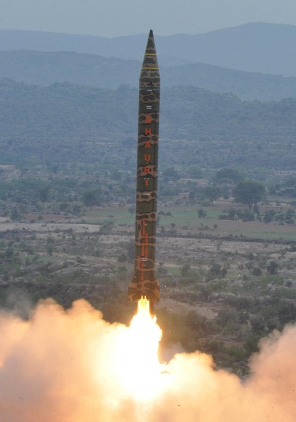 Image: Pakistani Army’s Hatf V medium-range ballistic missile during its launch. Photo: courtesy of ISPR.