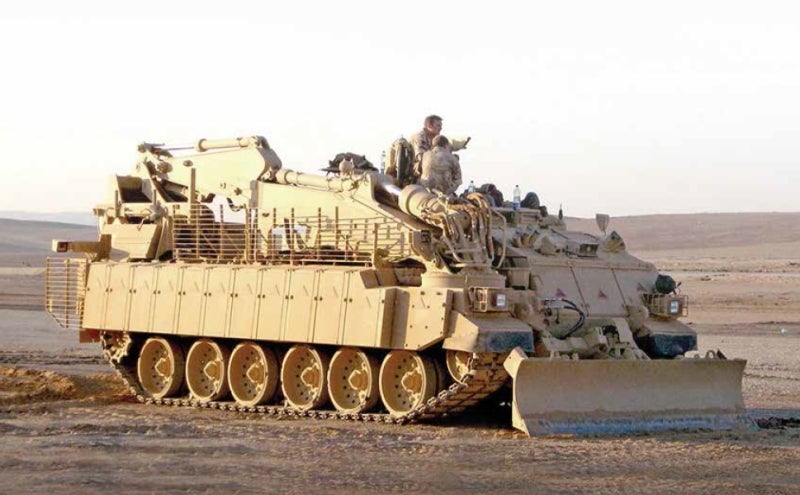 The direct fit dozer (DFD) is suitable for fitment onto the M1 MBT. It has been designed to compactly stow on a MBT. The approach angle has been maximised without impeding operation of the gun, even when fully depressed.