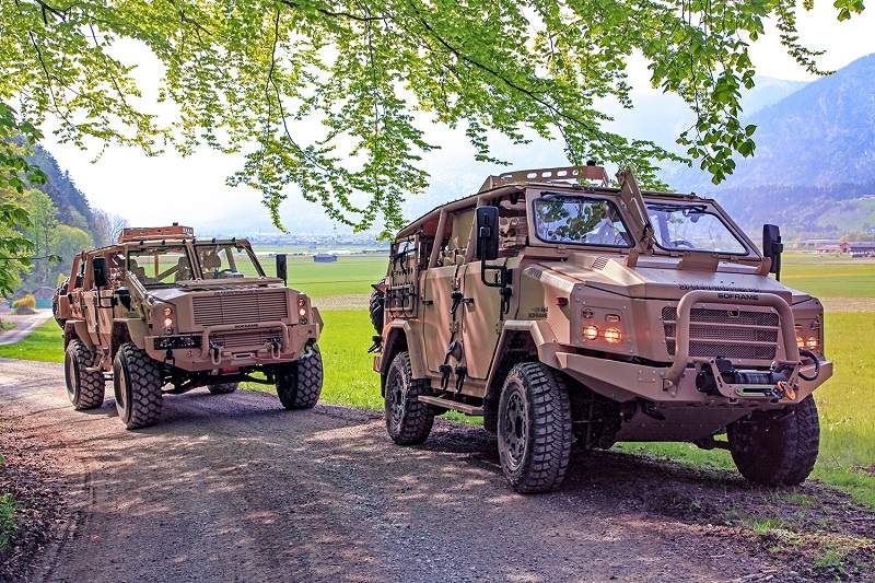 A rugged, rapid intervention vehicle developed for the operation on extreme terrains and in intense climate zones. The Speedfighter 55 impresses with its off-road capability and speed at a total weight of 5.5t and a payload of up to 1,000kg. The overall concept allows the Speedfighter 55 to be transported at any time by train, truck, ship or plane. After preparations, the vehicle can be dropped with a parachute on operation site. Many mission-specific options can be installed according to customer requirements.
