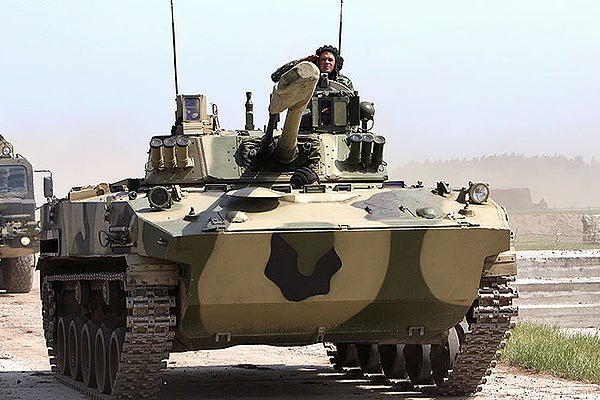 The BMD-4M can be dropped from airplane using a parachute platform. It can also drive through the water.