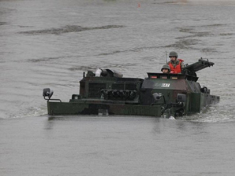 The vehicle is propelled in the water by two pump jets that enable 360° manoeuvrability in rip currents. It can swim in river streams at a maximum speed of 8.6km/h.