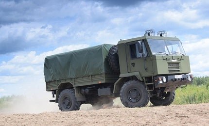 The all-terrain truck, designed to transport troops and military equipment, is manufactured by state-owned automotive firm OJSC Minsk Wheeled Tractor Plant (MZKT), also known as Volat.