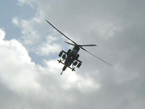 The pilot cockpit is equipped with multi-function LCD displays, a head-up display (HUD), dual Hands on Collective and Stick (HOCAS) controls and an auto-pilot system. The roof-mounted electro-optical sensor turret houses a Fujitsu forward looking infrared (FLIR), a colour TV camera, a laser range-finder and target designator.