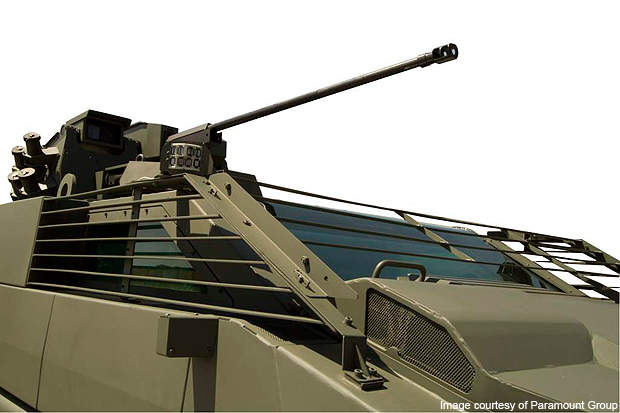 The Mbombe can be armed with a dual feed 30mm calibre cannon and a 7.62mm coaxial machine gun fitted to the right side of the main armament. There are four smoke grenade launchers mounted on each side of the turret.