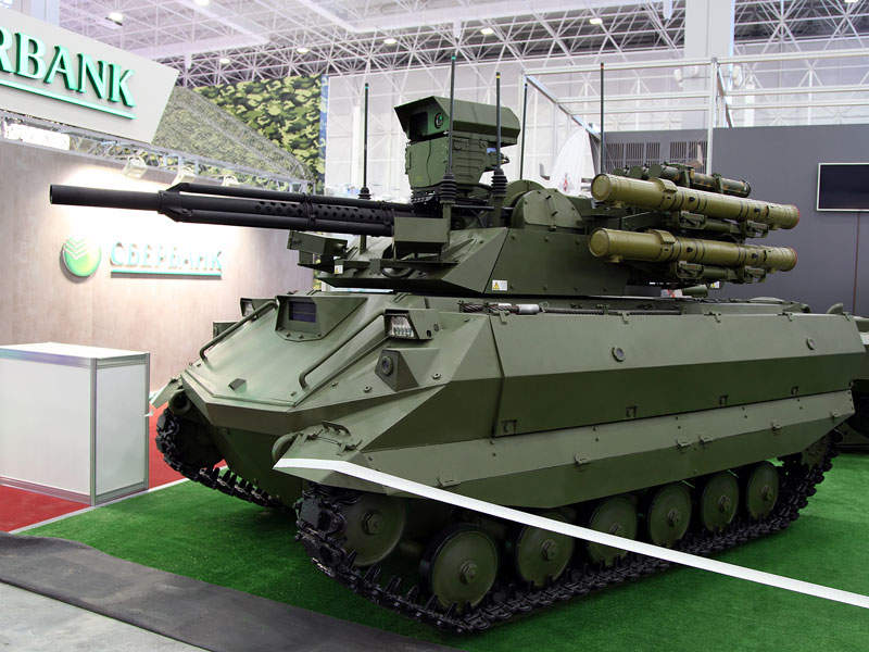 The robot is also provided with six 93mm-calibre rocket-propelled Shmel-M reactive flamethrowers, three on each side of the turret. With a maximum firing range of 1km, the Shmel-M can destroy enemy manpower and weaponry inside protective shelters and field fortifications.
