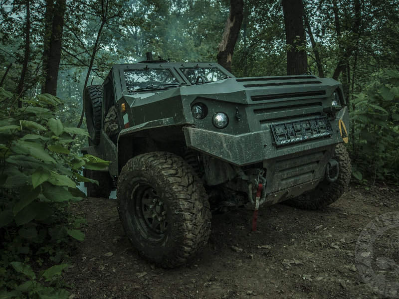 The vehicle measures 4m-long, 2m-wide and 2m-high, and has a wheelbase of 2.6m, which is higher than many other vehicles in the light armoured vehicle (LAV) segment. Its gross vehicle weight (GVW) is between 2.6t and 3t, while curb weight is 1.7t and maximum payload capacity is 1,300kg.